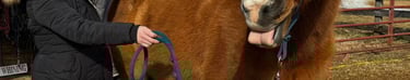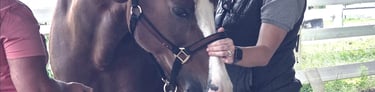 A relatively clean (preferably no mud chunks), dry horse in a quiet space (stall, pasture, arena, wherever the horse feel's most comfortable) with a well-fitting halter is all that’s needed. Please try and avoid scheduling vet, farrier, or dental work right before or after just to get the most from the work and for the horse's comfort.